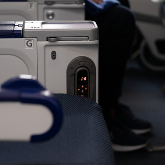 The seat controls and IFE controller are located on the sides of the middle arm rest of the seat. This makes it difficult to access the controls when the tray table is out. The controller unit is removable though, so remember to remove it before you fold out the tray table.
